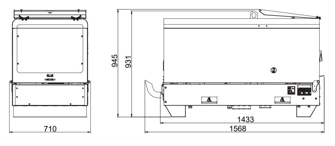 1x400V 32A 3P+N+T CEE, 1x230V 32A 2P+T CEE, 1x230V 16A 2P+T CEE, 2 DINSE 200 A prize pentru 48V |